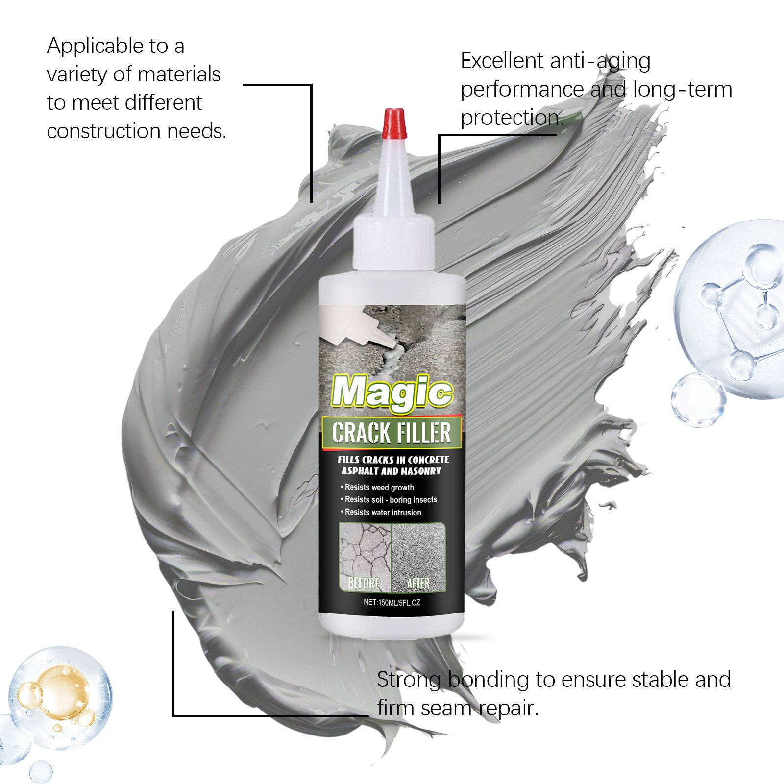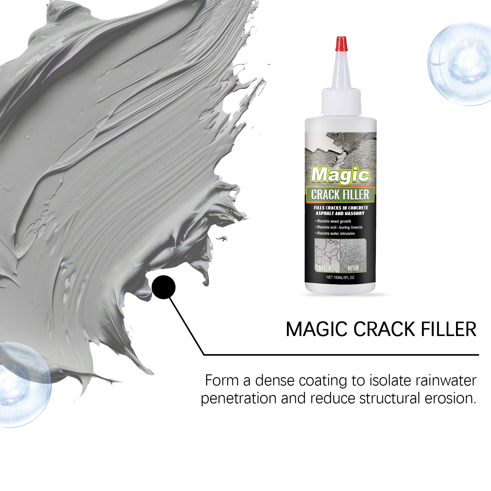 - 🏡REFRESH YOUR PROPERTY Magic Crack Filler’s formula resists and slows down water intrusion, giving your property that well-cared for look. Once filled with Magic Crack Filler, cracks are almost unnoticeable.