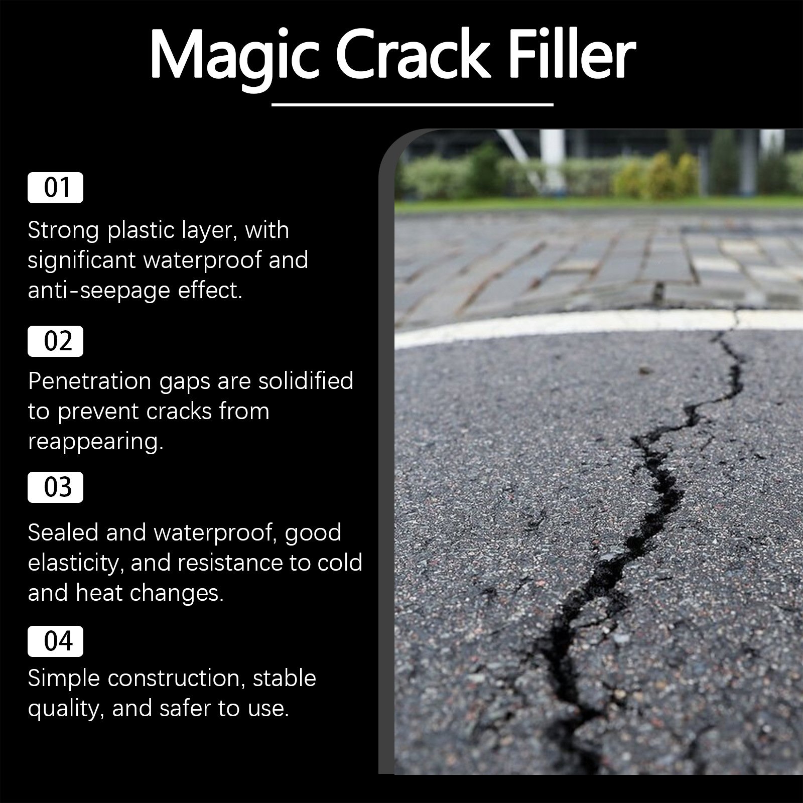 - 🚶FILL ANY CRACK Because of its granulated formula, Magic Crack Filler can be used to fill everything from hairline cracks to much larger more unsightly ones—and from straight cracks to ones that look more like a road map through the mountains.