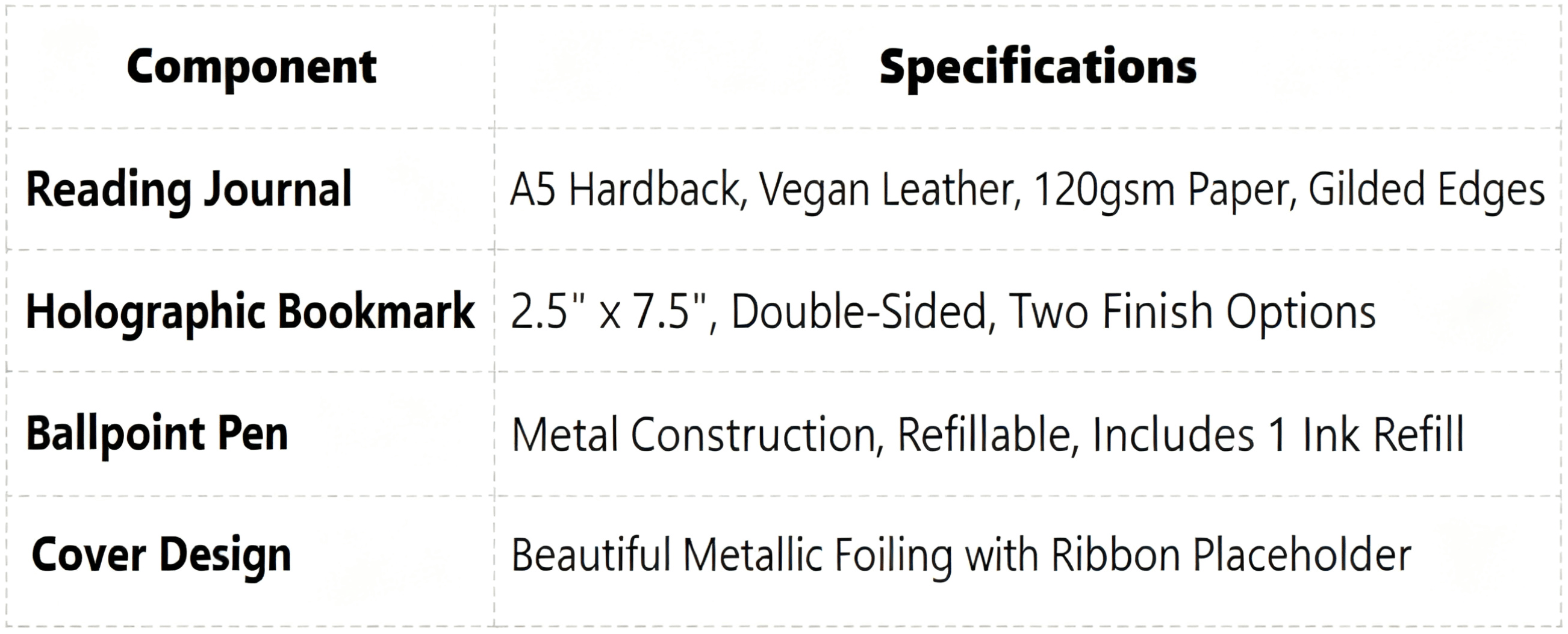 â Beautifully Curated Bundle â Includes Reading Journal + Matching Holographic Bookmark + Refillable Ballpoint Pen + Ink Refill
